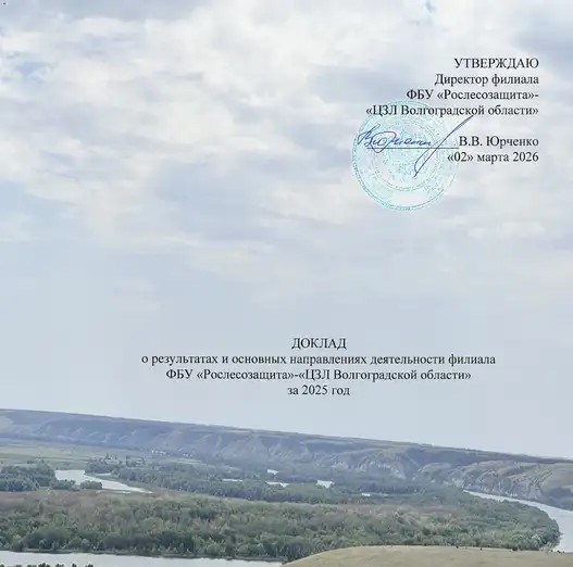Директор Центра защиты леса Волгоградской области Юрченко В.В. представил развернутый Доклад о результатах и основных направлениях деятельности филиала за 2025 год
